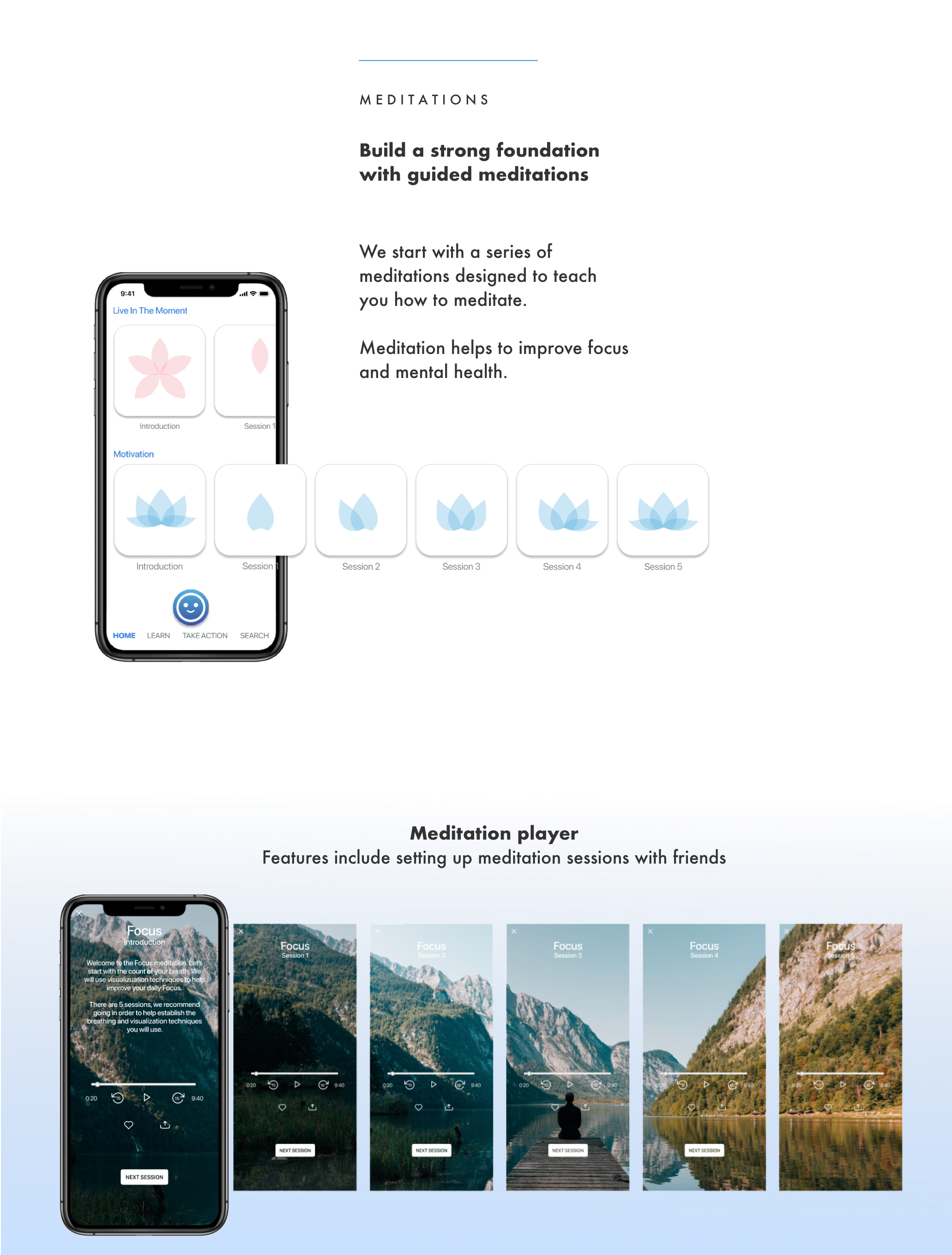 My empathy interviews gave me a small slice of the emotional landscape our users are facing, and motivated me to make each tap and feature within the app count. I didn’t want to add to their stress with impractical or unnecessary design. The app is meant to be a tool for each user on their mindfulness journey, and I wanted that tool to always help rather than hinder their progress.